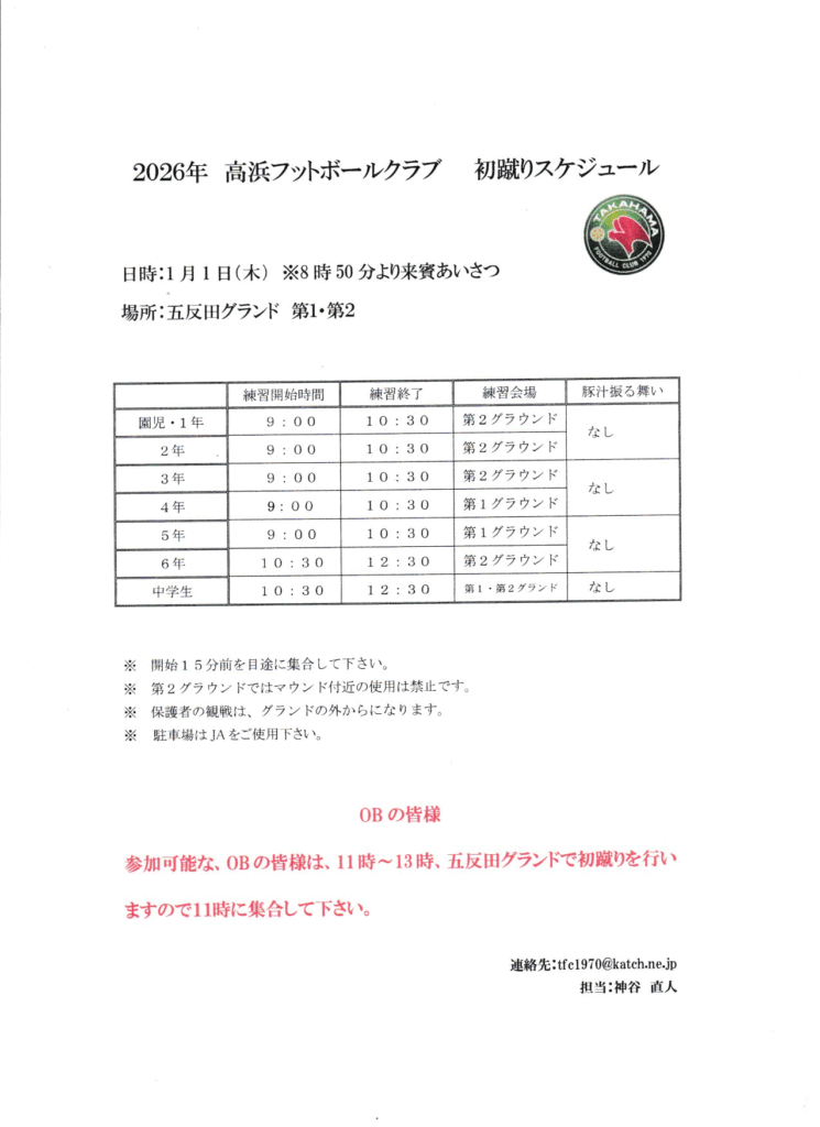 令和8年1月1日(木)、初蹴りを行います!!