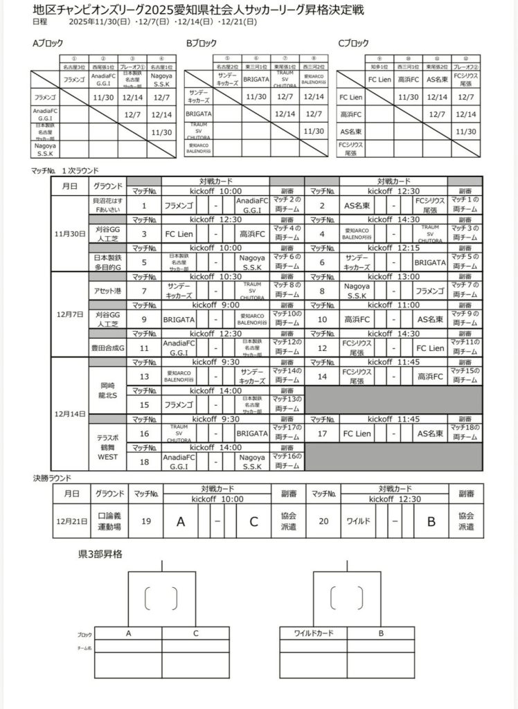 クラブ観戦ガイド 高浜FC TOPチーム 入れ替え戦日程
